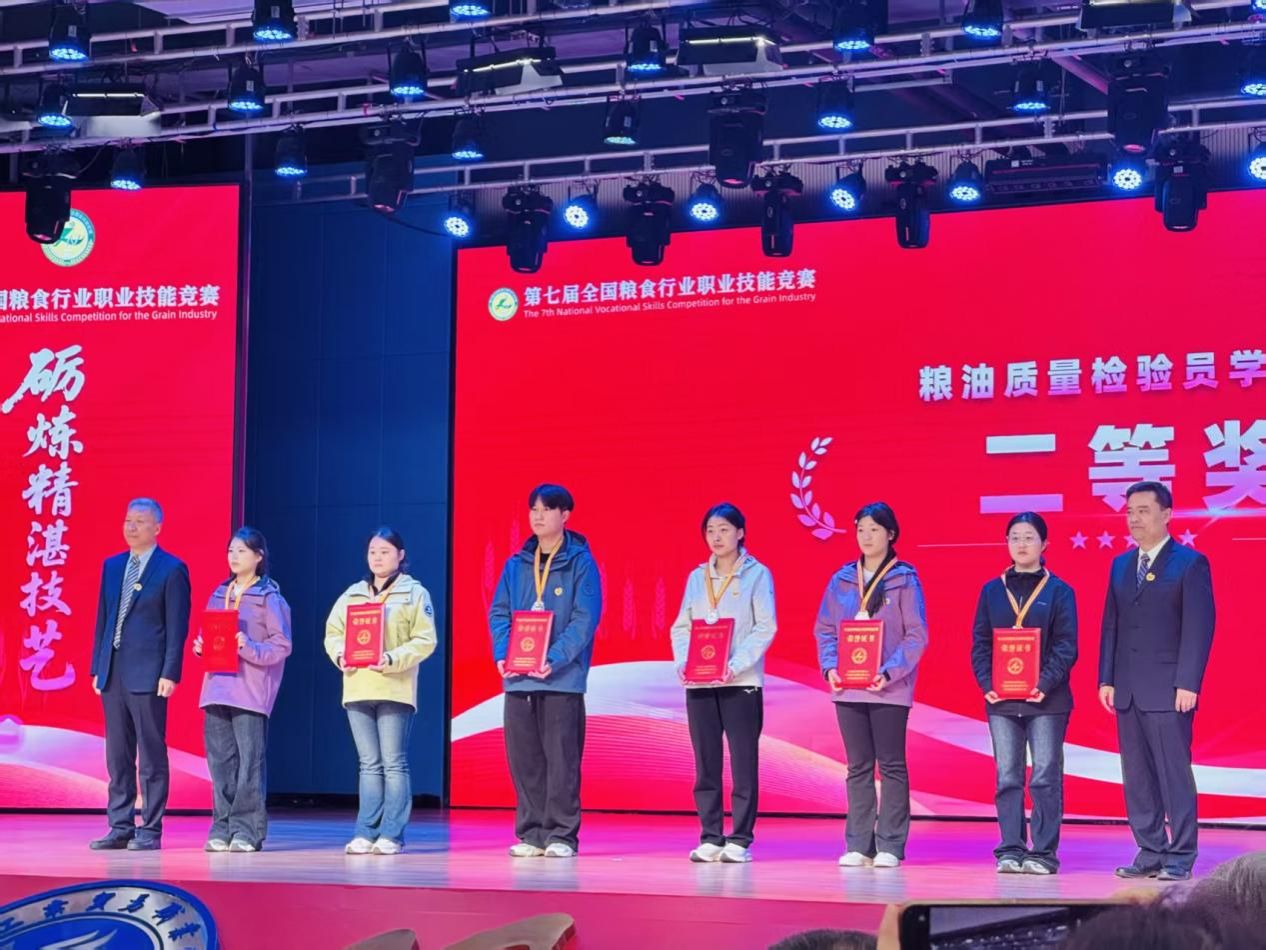 11月6日,以 “砺炼精湛技艺,守护大国粮仓” 为主题的第七届全国粮食行业职业技能竞赛在河南郑州圆满落幕。beat365学子在这场全国粮食行业规模最大、规格最高的技能巅峰对决中表现亮眼,历经多轮激烈角逐,最终斩获全国二等奖 1 项、三等奖 1 项,充分彰显了学院在粮食相关专业领域的扎实教学成效与学子过硬的专业素养。