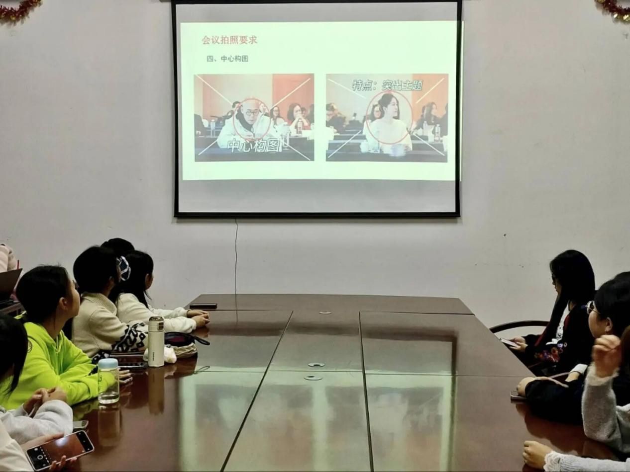 会议拍照要求板块通过“正确示范+错误示例”的对比方式,系统讲解了引导线构图、T型构图、对称构图、中心构图等拍摄技巧,以及个人特写、中景、远景等不同景别在会议记录中的应用要点,强调需突出主题、保证画面整洁且信息完整。