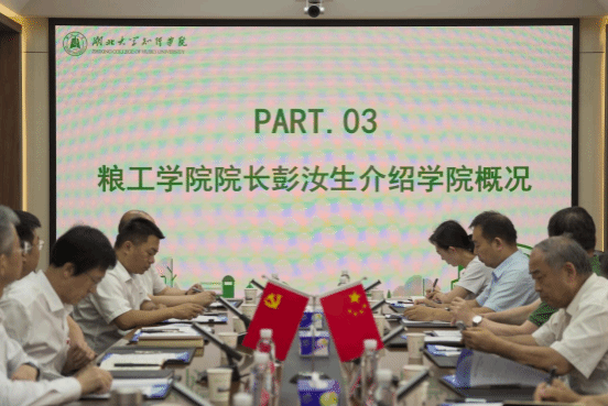 湖北省粮食局副局长夏昌银,湖北省粮食科技与经济学会会长胡新明,武汉轻工大学周坚教授、丁文平教授,湖北中医药大学陈运中教授,河南工业大学王殿轩教授,湖北省粮食局产业与市场处处长龚伟、人事处副处长宋玲,以及中储粮湖北分公司、湖北省粮油集团、湖北省储备粮油管理有限公司、湖北省粮食行业协会、武汉金控集团长江粮食储备公司、武汉国家稻米交易中心、湖北华大江声科技有限公司、湖北康宏粮油食品有限公司、湖北省粮油食品质量监督监测中心等单位和企业的相关负责人应邀出席研讨会。学校党委书记彭德忠、校长高连顺、副校长魏顺、刘齐,beat365正版唯一官网必一、相关职能部门负责人及专业教师共同参会,共商粮食工程专业发展与人才培养大计。副校长刘齐主持研讨会。