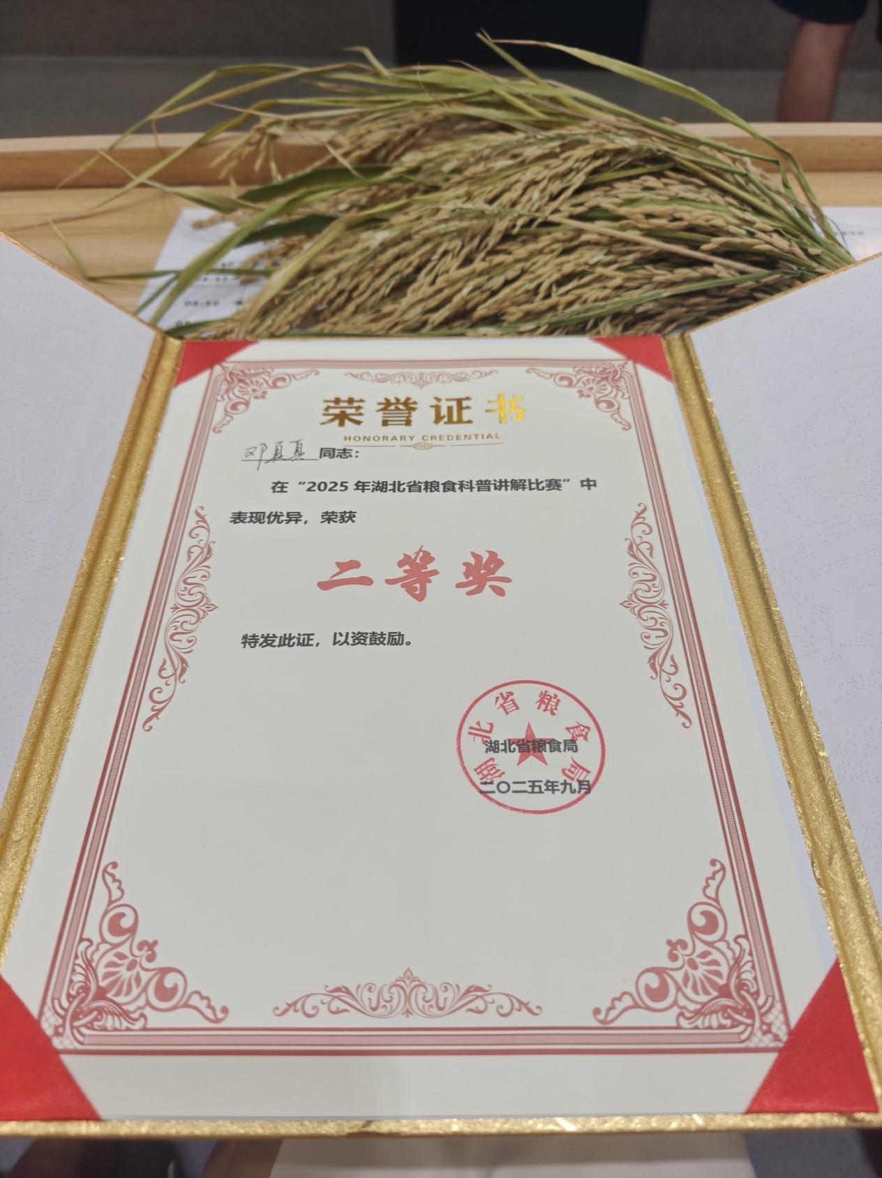 beat365学子邓真真荣获2025年湖北省粮食科普讲解比赛二等奖