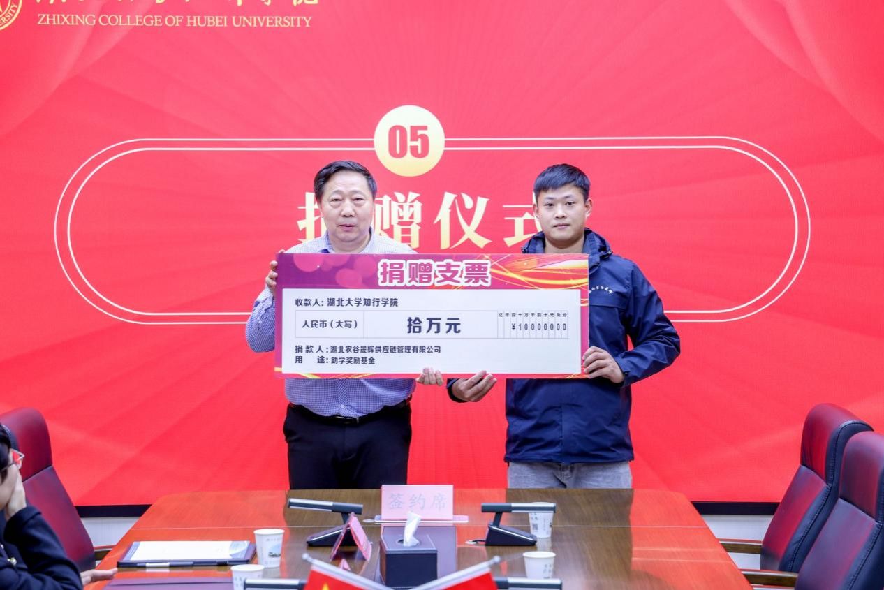 湖北农谷晟辉供应链管理有限公司向学校捐赠10万元设立奖学金